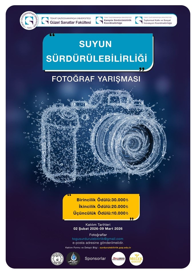 Tokat Gaziosmanpaşa Üniversitesi Güzel Sanatlar Fakültesi, Kampüs Sürdürülebilirlik Koordinatörlüğü ve Toplumsal Katkı ve Sosyal İnovasyon Koordinatörlüğü iş birliğiyle, suyun önemine dikkat çekmek ve sürdürülebilirlik konusunda farkındalık oluşturmak amacıyla “Suyun Sürdürülebilirliği” temalı fotoğraf yarışması düzenlenmektedir.